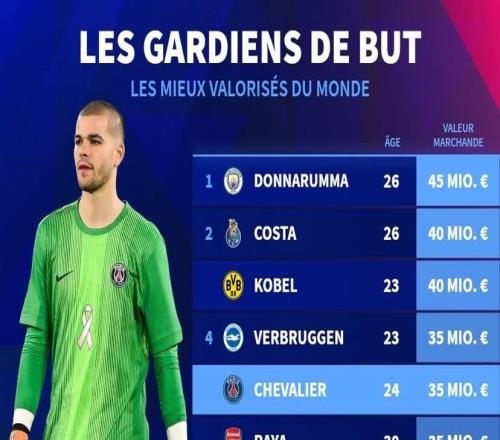 德转门将身价前10:多纳鲁马4500万欧第1,拉亚3500万并列第4